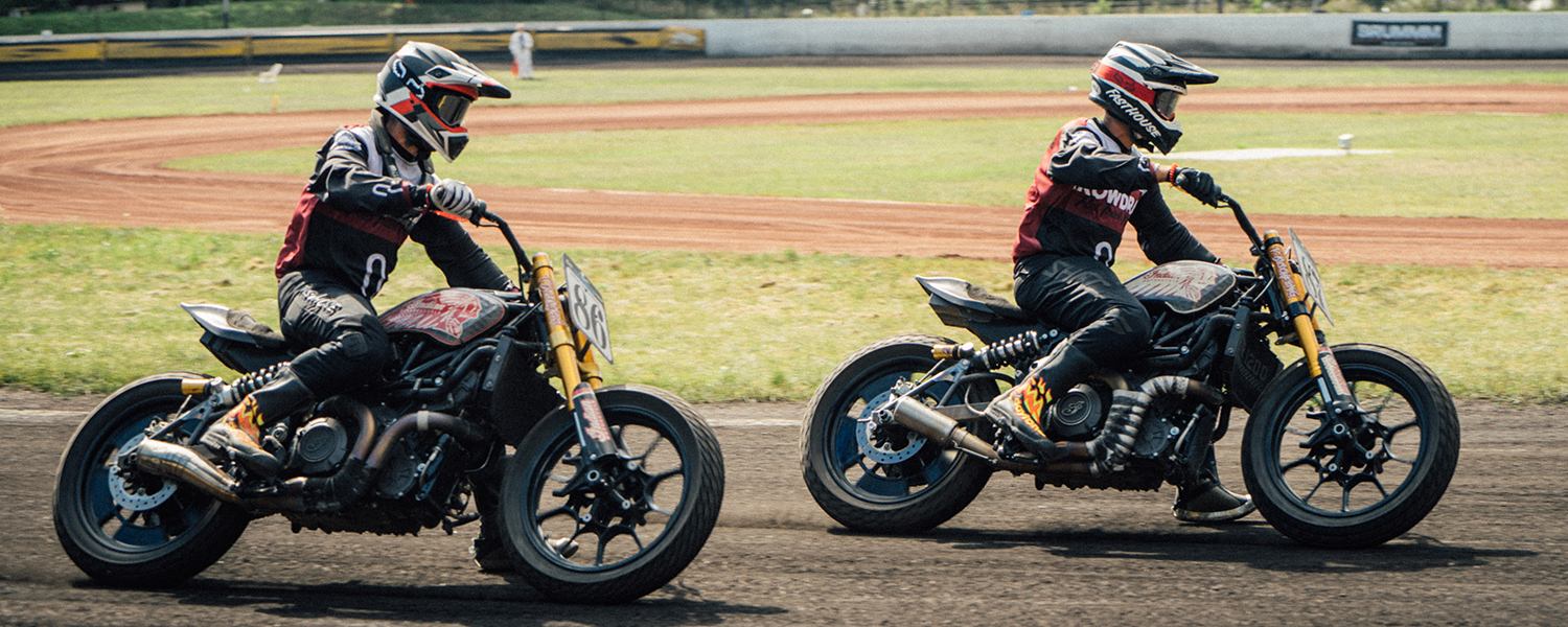Neben Größen wie dem amtierenden FIM Flat Track-Weltmeister Lasse Kurvinen aus Finnland ging natürlich auch das deutsche Indian Motorcycle Team „Buschkönig“ am Eichenring an den Start. Auf dem Rundkurs hatte das aus Vater Jürgen und den beiden Söhnen Tobias und Patrick bestehende Team mit ihren FTR 1200 bereits etliche Erfolge eingefahren, Flat Track auf der Speedwaybahn aber war neues Terrain und so sahen alle gespannt dem bevorstehenden Wochenende entgegen. Würden sich all die durchschraubten Nächte bezahlt machen? All die Änderungen und Umbaumaßnahmen die nötig waren, um aus den Rundkursrennern Flat Track-Bikes zu machen? Würde es Tobias und Patrick gelingen, die schweren Maschinen auch in dieser Disziplin so schnell um die Kurven zu bewegen?